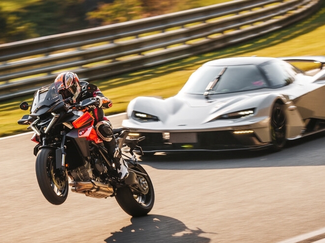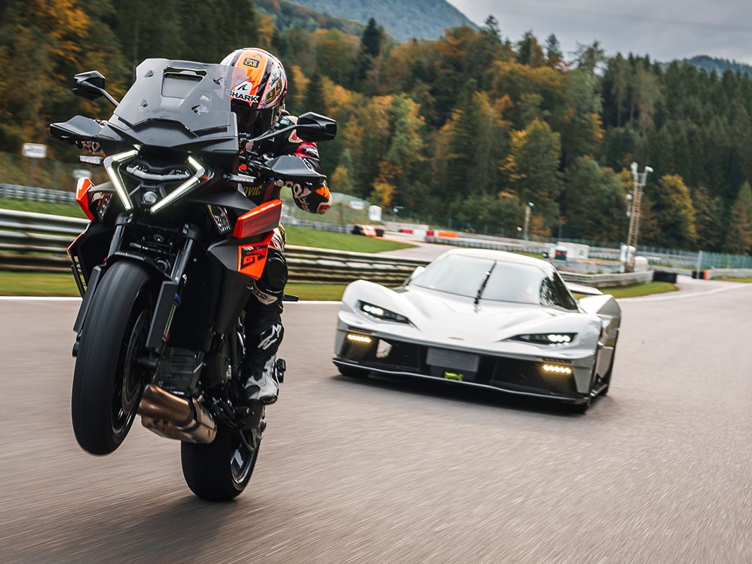 Disclaimer: Każda jazda powinna odbywać się w kasku i odzieży ochronnej. Zdjęcia przedstawiają profesjonalnych kierowców w kontrolowanych warunkach. Specyfikacja i dostępność wyposażenia mogą różnić się w zależności od rynku; część ilustracji pokazuje akcesoria dostępne za dopłatą. Dane techniczne i osiągi mają charakter orientacyjny i mogą ulec zmianie. Parametry (np. 0–100 km/h) nie są oficjalnymi danymi producenta, lecz wynikają z naszych testów i testów branżowych. Spalanie w motocyklach wyczynowych jest szacowane i zależne od stylu jazdy oraz warunków terenowych.