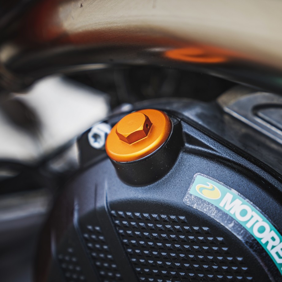 Ten korek oleju to idealny wybór dla właścicieli motocykli KTM, którzy oczekują nie tylko funkcjonalności, ale i trwałości oraz dopracowanego designu. Jego zastosowanie wpływa na bezproblemową eksploatację silnika oraz podnosi estetykę motocykla dzięki charakterystycznemu, pomarańczowemu wykończeniu. Produkt posiada homologację HOMNN, co potwierdza jego zgodność z normami producenta i bezpieczeństwo użytkowania.