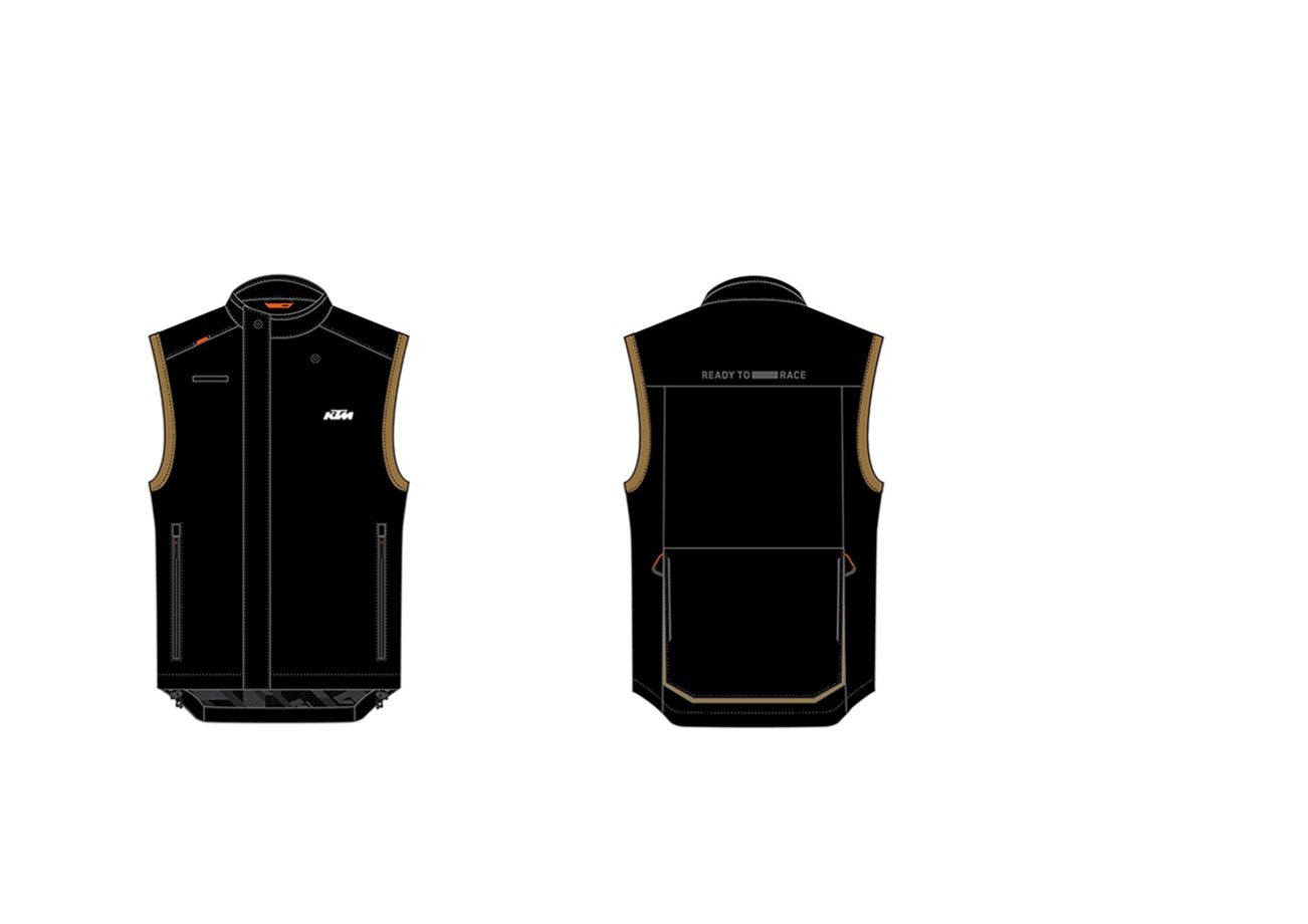 Projektując Kamizelkę Racetech, marka KTM zadbała o liczne detale zwiększające funkcjonalność. Regulowany kołnierz z zatrzaskami oraz ściągacz w pasie pozwalają na idealne dopasowanie do sylwetki i ochronę przed wiatrem. Przedni zamek błyskawiczny w połączeniu z zapięciem na rzepy gwarantuje szybkie i pewne zamknięcie. Wygodę użytkowania podnoszą liczne kieszenie – zarówno zewnętrzne, jak i wewnętrzne – w tym duża kieszeń cargo na plecach, idealna na niezbędne drobiazgi. Kamizelka wyposażona jest także w specjalną kieszeń na system nawadniający, co czyni ją doskonałym wyborem na dłuższe trasy. Całość wykończono siateczkową podszewką oraz wysokiej jakości zamkami YKK, które zapewniają trwałość i niezawodność.