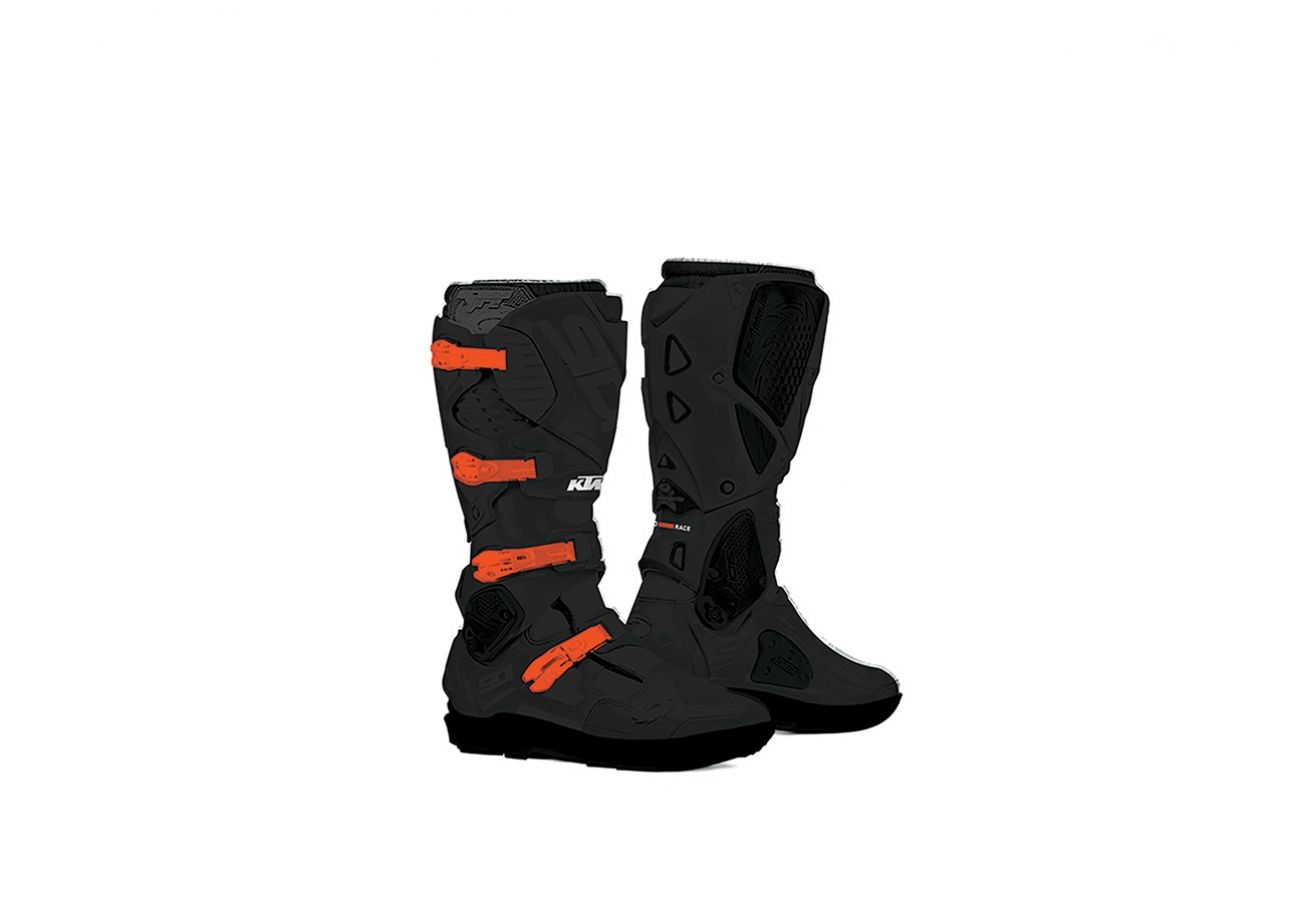Model Crossfire 3 SRS wyróżnia się dynamicznym designem w charakterystycznych dla KTM kolorach – pomarańczowym i czarnym, podkreślając sportowy i profesjonalny charakter obuwia. Buty zostały zaprojektowane i wyprodukowane w Europie, co gwarantuje wysoką jakość wykonania i dbałość o detale. Dzięki zastosowaniu anatomicznej, wyjmowanej wkładki oraz dodatkowego stawu w cholewce, buty idealnie dopasowują się do kształtu nogi, zapewniając swobodę ruchów i wygodę nawet podczas długich tras. To doskonały wybór dla osób ceniących sobie bezpieczeństwo, trwałość i nowoczesne technologie w motocyklowym obuwiu.