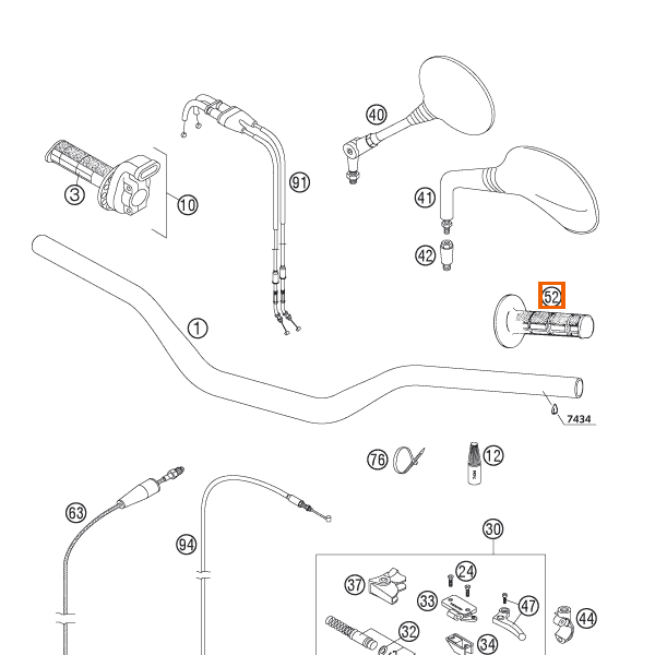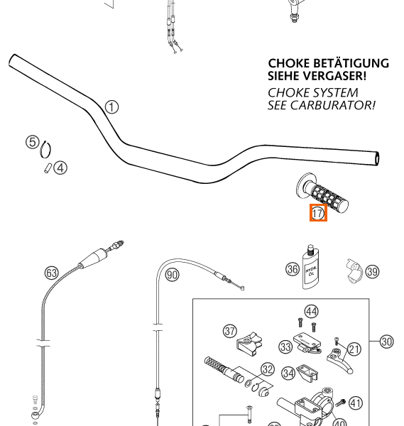 Wewnętrzna część gripów wykonana jest z twardszego, pomarańczowego materiału, który gwarantuje odporność na ścieranie i długotrwałe użytkowanie. Z kolei zewnętrzna warstwa z miękkiego, czarnego tworzywa zwiększa komfort chwytu, redukując zmęczenie dłoni podczas jazdy. Zamknięte końcówki gripów dodatkowo chronią przed uszkodzeniami i zapewniają stabilność uchwytu. Produkt posiada homologację HOMNN, co potwierdza jego zgodność z normami jakościowymi KTM.