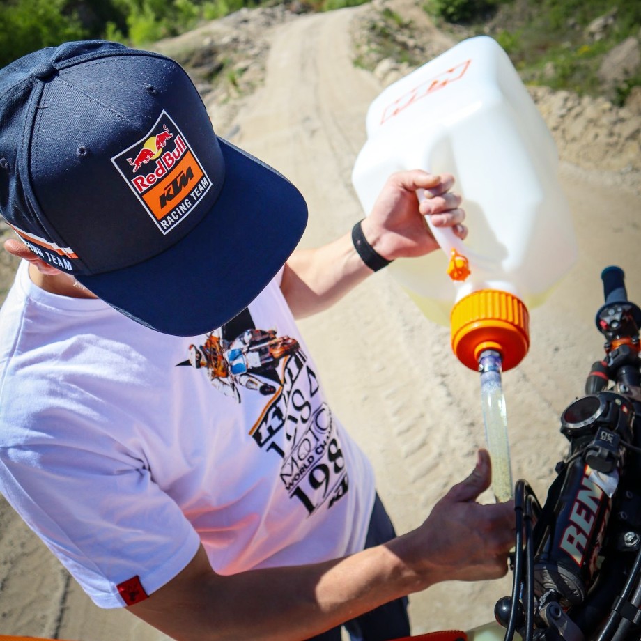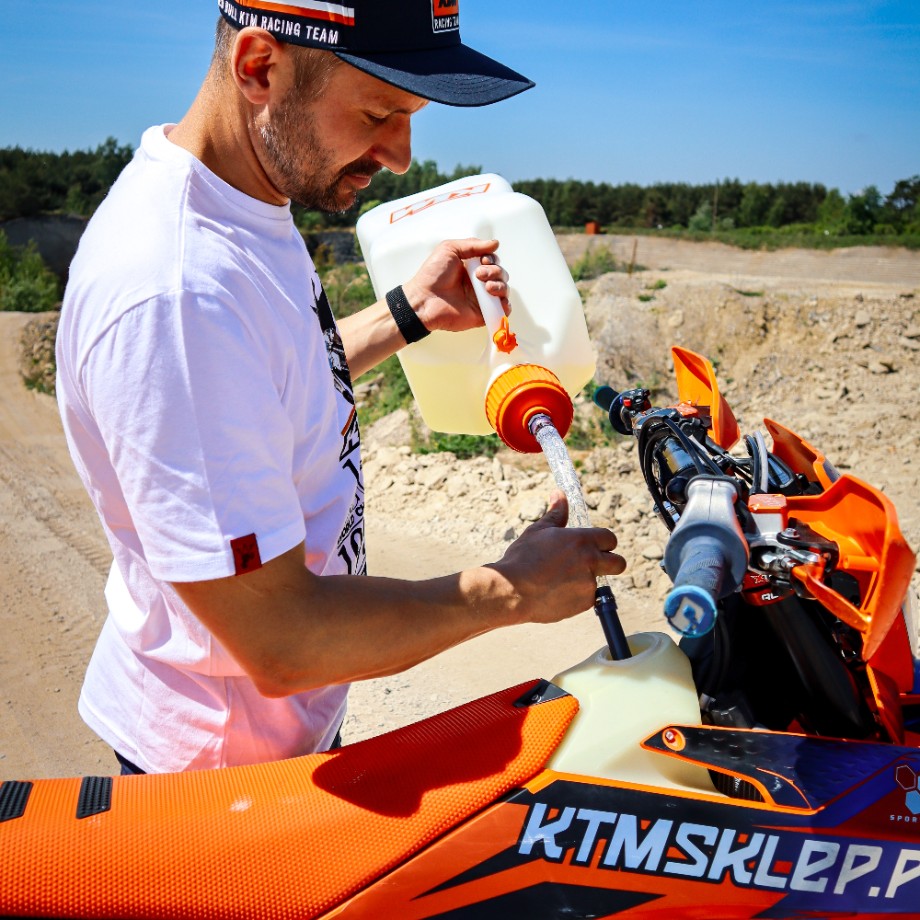 Ten pojemnik to idealne rozwiązanie dla motocyklistów KTM, którzy potrzebują niezawodnego i wygodnego sposobu na przewóz płynów eksploatacyjnych lub innych substancji. Elastyczny wąż ułatwia nalewanie, a szczelna nakrętka zabezpiecza przed przypadkowymi wyciekami. Dzięki temu produktowi użytkownicy zyskują komfort i bezpieczeństwo podczas przygotowań do jazdy oraz w trakcie podróży.
