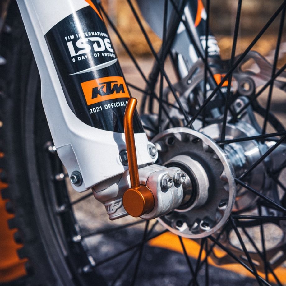Produkt ten znacząco usprawnia proces zdejmowania przedniego koła, eliminując ryzyko uszkodzenia osi czy innych elementów zawieszenia. Jako część oferty KTM, ściągacz posiada homologację HOMNN, co potwierdza jego zgodność z wysokimi standardami jakości i bezpieczeństwa stosowanymi przez producenta. To akcesorium jest idealne dla właścicieli motocykli KTM, którzy cenią sobie precyzję wykonania oraz funkcjonalność podczas codziennej eksploatacji i serwisowania.