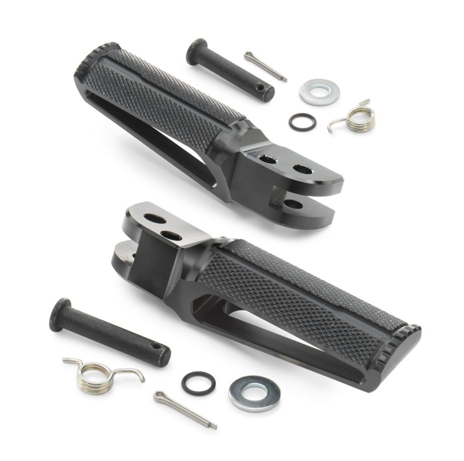 Ten zestaw podnóżków to doskonały wybór dla użytkowników motocykli KTM, którzy oczekują połączenia stylu i funkcjonalności. Dzięki nim motocykl zyskuje nie tylko na wyglądzie, ale przede wszystkim na ergonomii i trwałości elementów eksploatacyjnych. To rozwiązanie, które podnosi komfort jazdy i wspiera sportowy charakter maszyny, zachowując przy tym najwyższe standardy jakości charakterystyczne dla marki KTM.