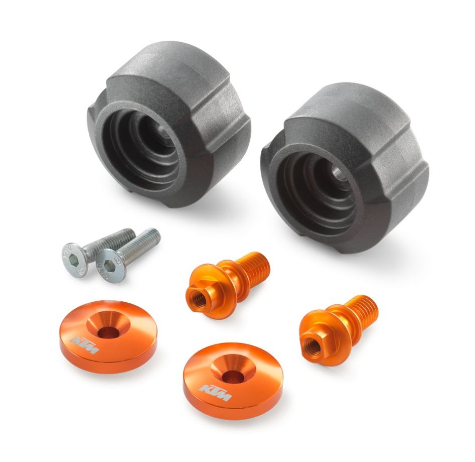 Ten zestaw jest idealnym wyborem dla właścicieli motocykli KTM, którzy cenią sobie niezawodność i ochronę podczas dynamicznej jazdy. Osłony skutecznie zabezpieczają tylne koło przed uszkodzeniami powstałymi w wyniku upadków lub uderzeń, co przekłada się na mniejsze ryzyko kosztownych napraw. Dzięki zastosowaniu oryginalnych komponentów KTM, użytkownik zyskuje pewność, że produkt jest w pełni kompatybilny i spełnia wysokie standardy jakościowe, charakterystyczne dla marki.