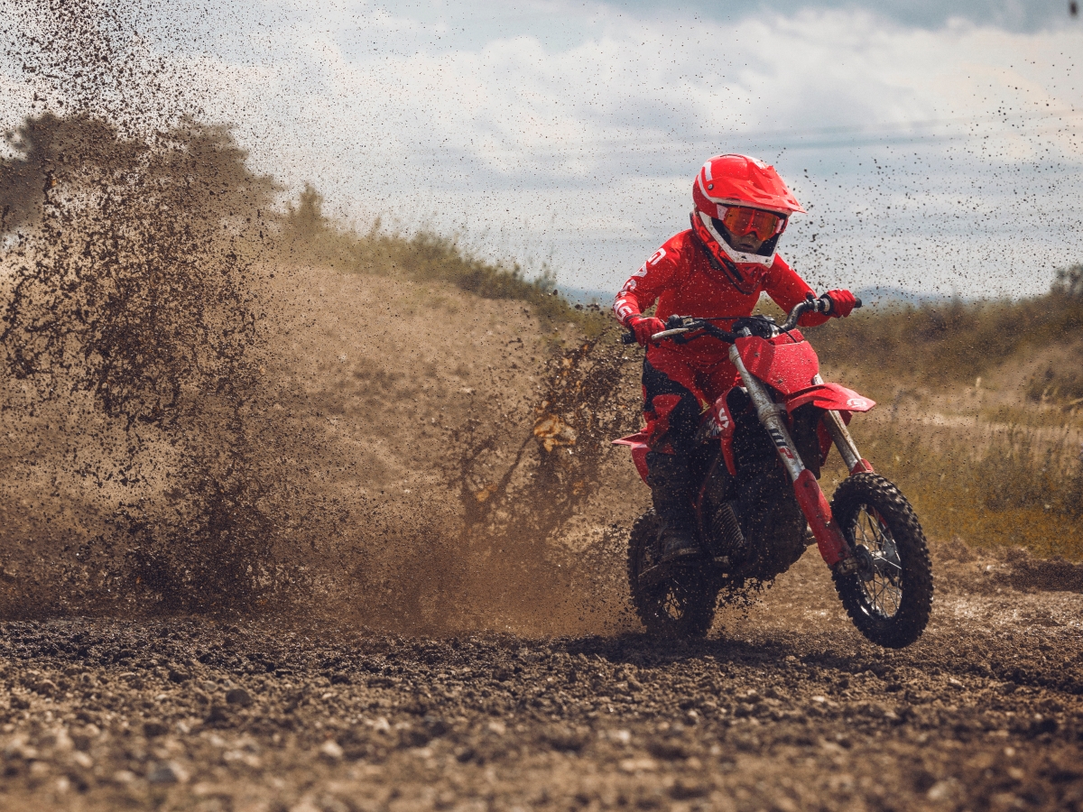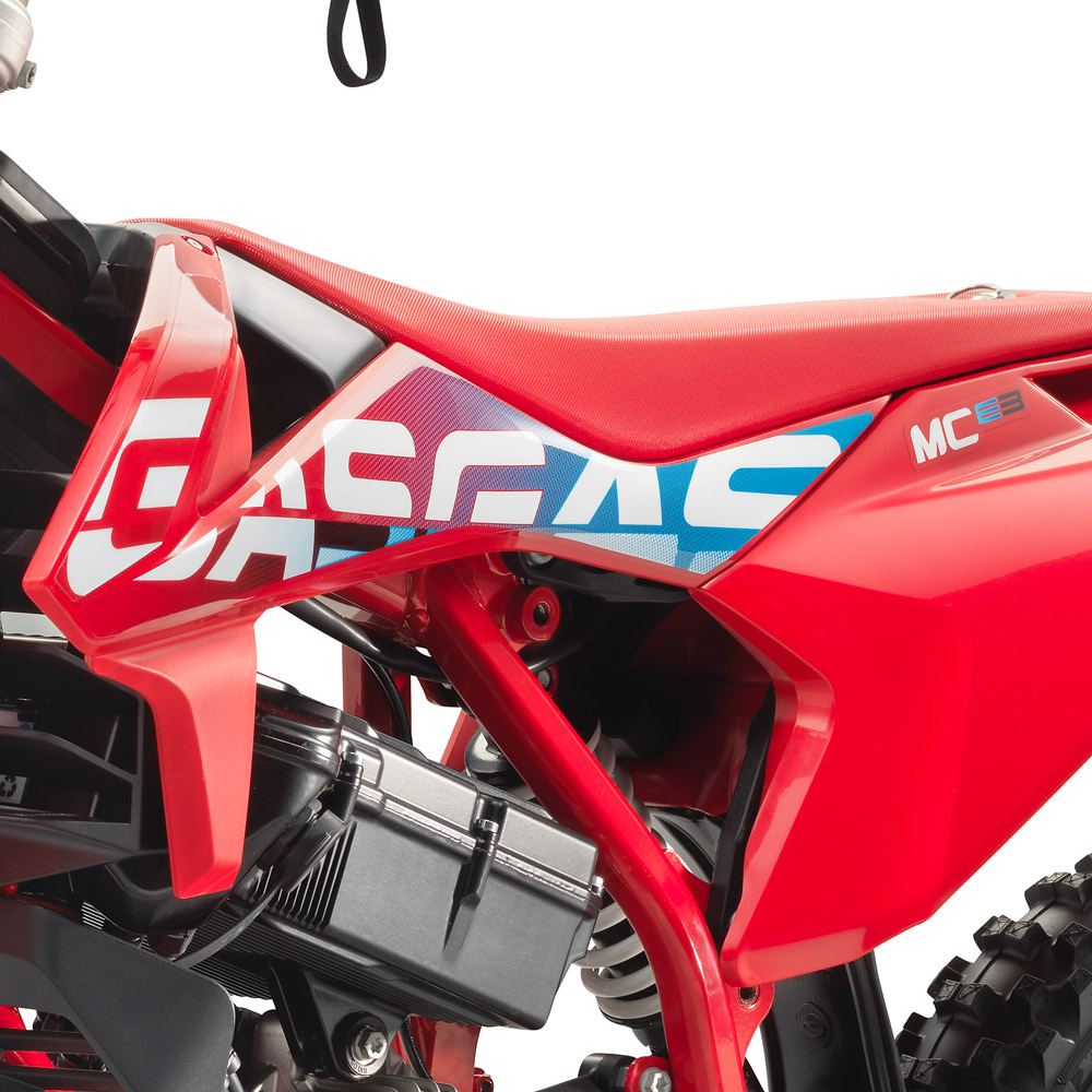 GASGAS MC-E 3 2024 to elektryczny motocross dla dzieci, które są już gotowe na coś więcej niż pierwszy mini motocykl. Większa moc, większe zawieszenie, większe możliwości – ale wciąż pełna kontrola i bezpieczeństwo. Cicho, dynamicznie i bez spalin.