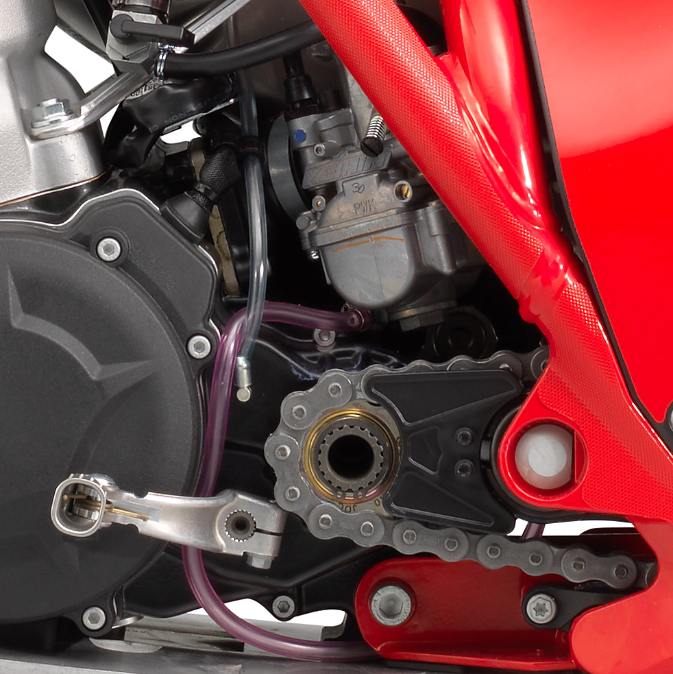 Jednocylindrowy silnik 2T o pojemności 294,1 cm³ i skoku tłoka 60 mm generuje potężny, ale w pełni użyteczny moment obrotowy. Niska masa 69,4 kg bez paliwa oraz kompaktowa geometria (rozstaw osi 1320 mm) sprawiają, że mimo dużej pojemności motocykl pozostaje niezwykle zwrotny i precyzyjny.