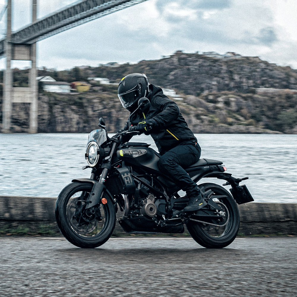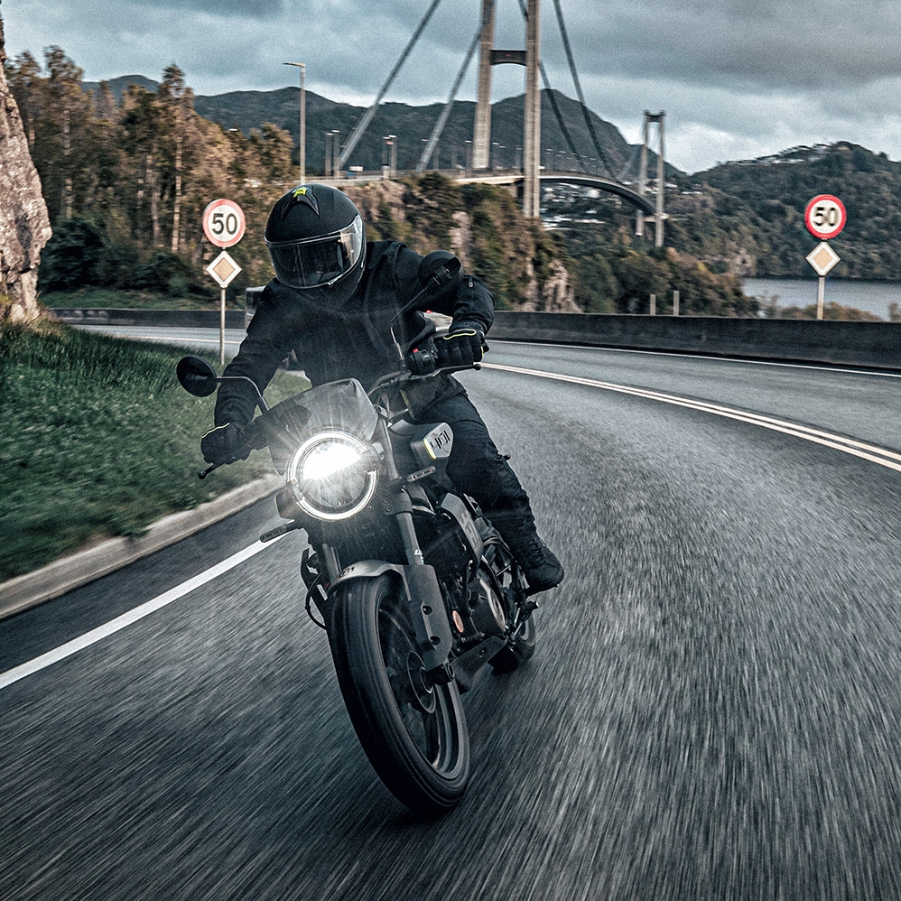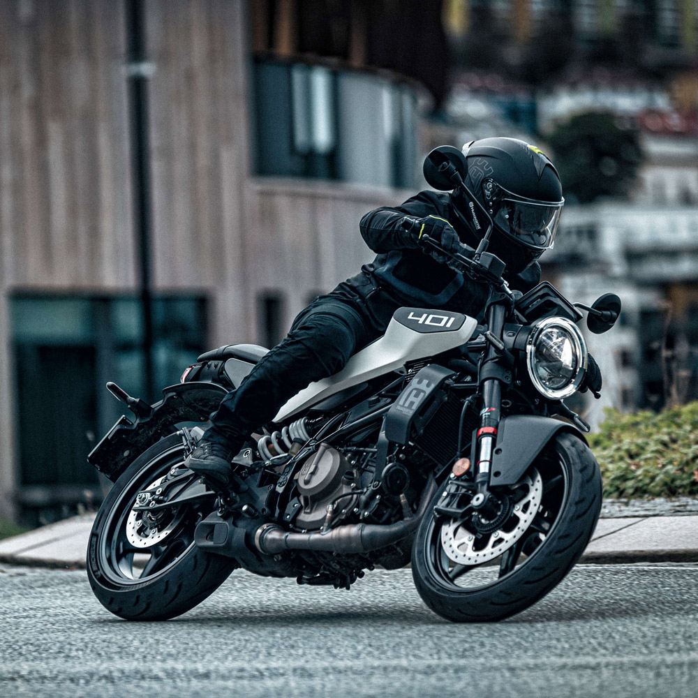 Nowa generacja Svartpilen 401 została wyraźnie dopracowana pod kątem ergonomii i stabilności. Niższe siedzenie, dłuższy rozstaw osi i zmieniona geometria sprawiają, że motocykl jest bardzo przewidywalny i przyjazny, a jednocześnie zachowuje lekkość i zwinność typową dla tej klasy.