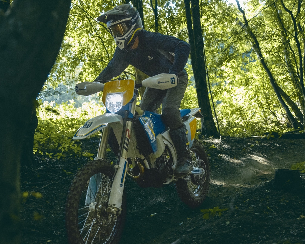 Model bazuje na sprawdzonej konstrukcji FE 250, cenionej za neutralne prowadzenie, łatwą kontrolę i bardzo szeroki zakres użytecznej mocy. Czterosuwowy silnik DOHC o pojemności 249,9 cm³ oferuje liniową charakterystykę i wysoką kulturę pracy, co przekłada się na mniejsze zmęczenie podczas długich dni w terenie oraz dużą skuteczność w technicznych sekcjach. To motocykl, który pozwala jechać precyzyjnie, płynnie i konsekwentnie – niezależnie od warunków.