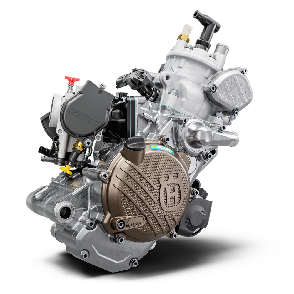 Sercem motocykla jest dwusuwowy silnik o pojemności 249 cm³ wyposażony w system wtrysku paliwa TBI (Throttle Body Injection). Rozwiązanie to łączy charakter klasycznego 2T z precyzją dozowania paliwa znaną z czterosuwów, oferując wysoki moment obrotowy już od niskich obrotów oraz stabilną, przewidywalną reakcję na gaz. Dzięki temu TE 250 doskonale radzi sobie w technicznych sekcjach, na stromych podjazdach i w zmiennych warunkach terenowych.
