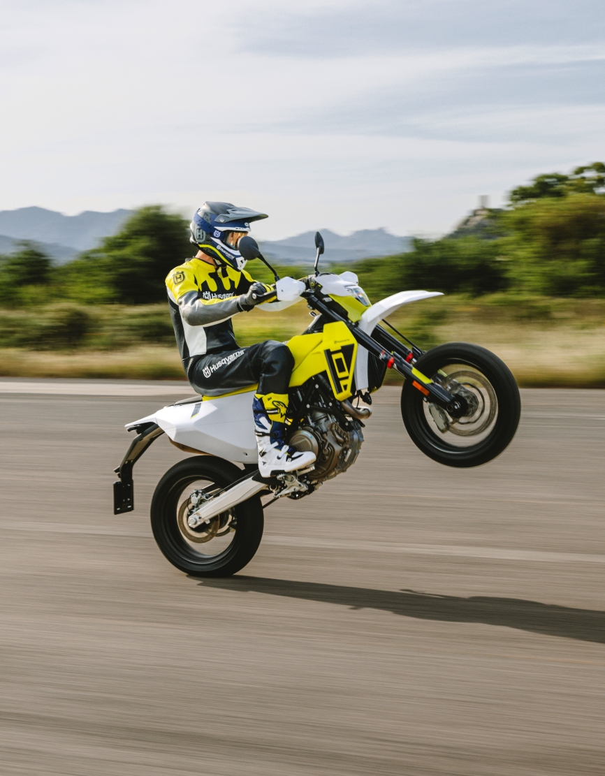 701 Supermoto to także jedna z najbardziej zaawansowanych technologicznie konstrukcji w segmencie. Rozbudowana elektronika, kilka trybów ABS, kontrola trakcji działająca w złożeniu, tryb Supermoto+ oraz możliwość aktywacji trybu Track (opcjonalnie) sprawiają, że motocykl można precyzyjnie dopasować do stylu jazdy – od codziennej jazdy po mieście po agresywną jazdę na krętych drogach.