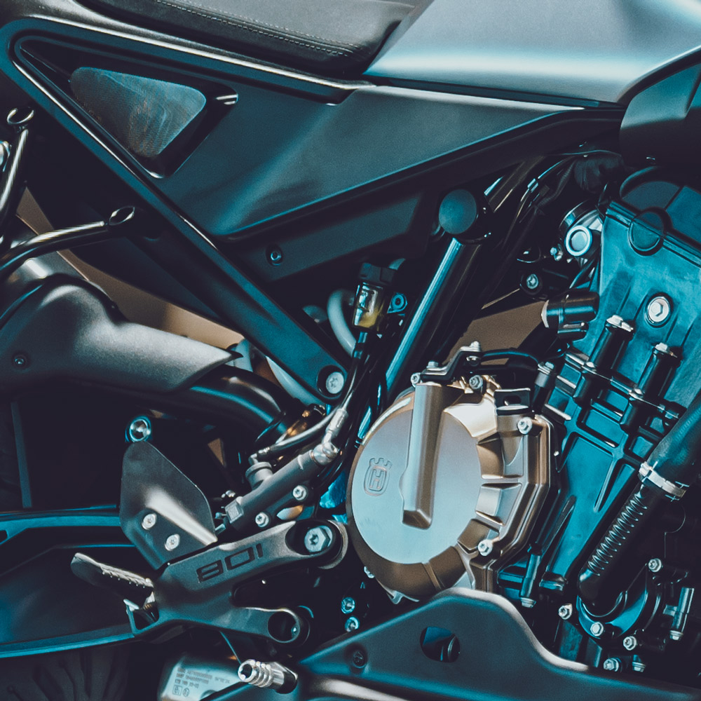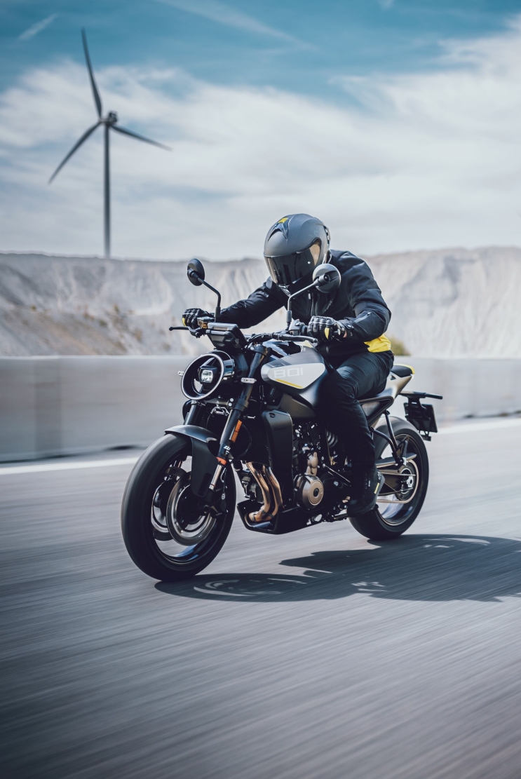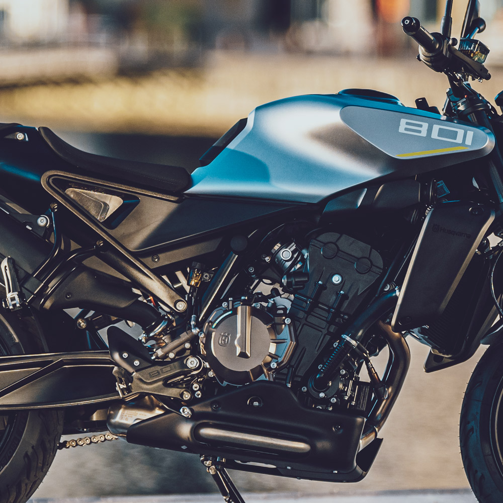 Sercem motocykla jest dwucylindrowy silnik rzędowy o pojemności 799 cm³, generujący 105 KM i oferujący bardzo wysoki moment obrotowy w średnim zakresie obrotów. Jednostka ta zapewnia natychmiastową reakcję na gaz, mocne przyspieszenia i dużą elastyczność, co sprawia, że Vitpilen 801 doskonale sprawdza się zarówno w dynamicznej jeździe miejskiej, jak i na krętych drogach pozamiejskich. Półsucha miska olejowa i zaawansowana konstrukcja silnika pozwoliły zachować kompaktowe wymiary oraz długie interwały serwisowe.