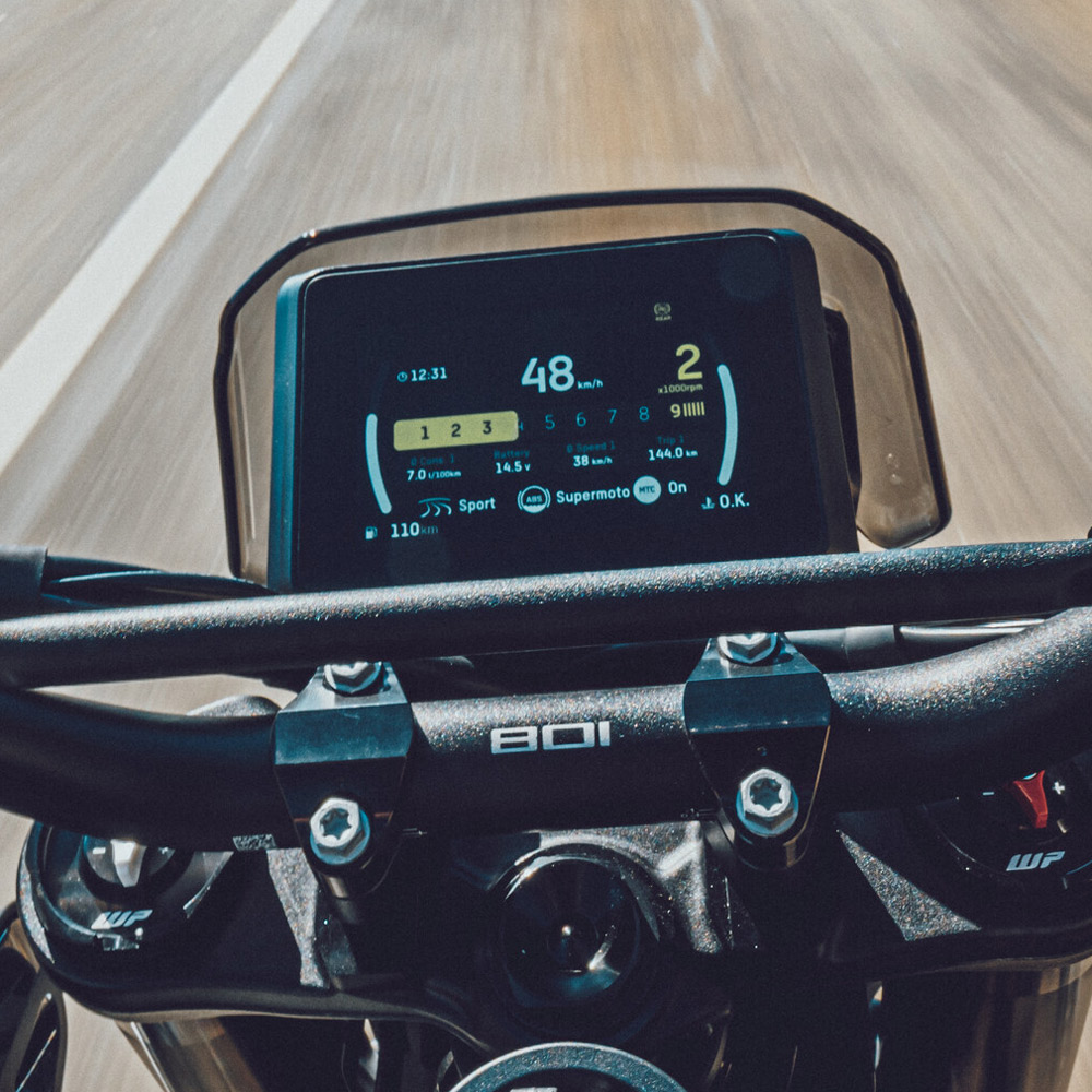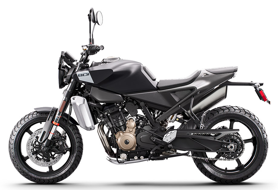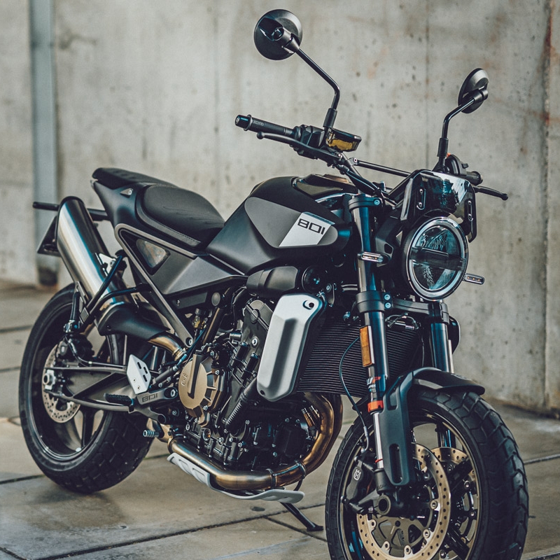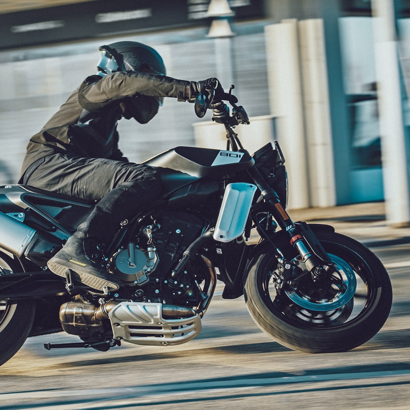 Dwucylindrowy silnik rzędowy o pojemności 799 cm³ zapewnia mocne, natychmiastowe przyspieszenie oraz wysoki moment obrotowy dostępny w szerokim zakresie obrotów. Jednostka napędowa została zaprojektowana z myślą o dynamicznej jeździe miejskiej i podmiejskiej, ale jednocześnie oferuje płynność i kulturę pracy potrzebną w codziennym użytkowaniu. Stabilne podwozie, precyzyjna geometria i wysokiej klasy zawieszenie WP pozwalają w pełni wykorzystać potencjał motocykla na krętych drogach.