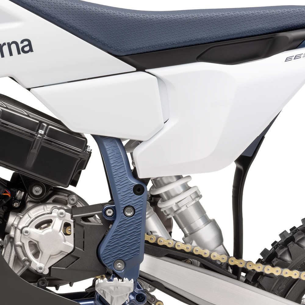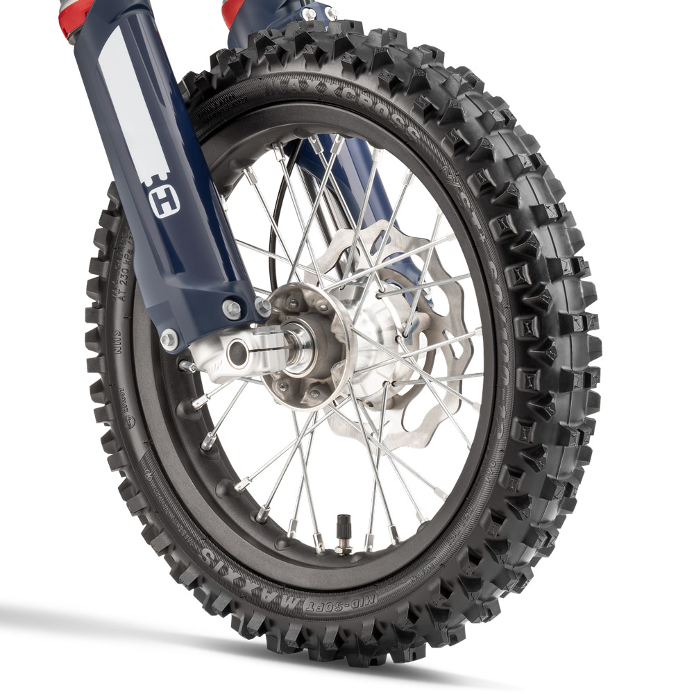 Motocykl oparto na pełnoprawnym podwoziu motocrossowym: stalowej ramie chromowo-molibdenowej, zawieszeniu WP XACT oraz hydraulicznych hamulcach tarczowych. Regulowana wysokość siedzenia i aż 6 trybów jazdy pozwalają precyzyjnie dopasować motocykl do wieku, wzrostu i umiejętności młodego ridera – od pierwszych treningów po starty w zawodach.