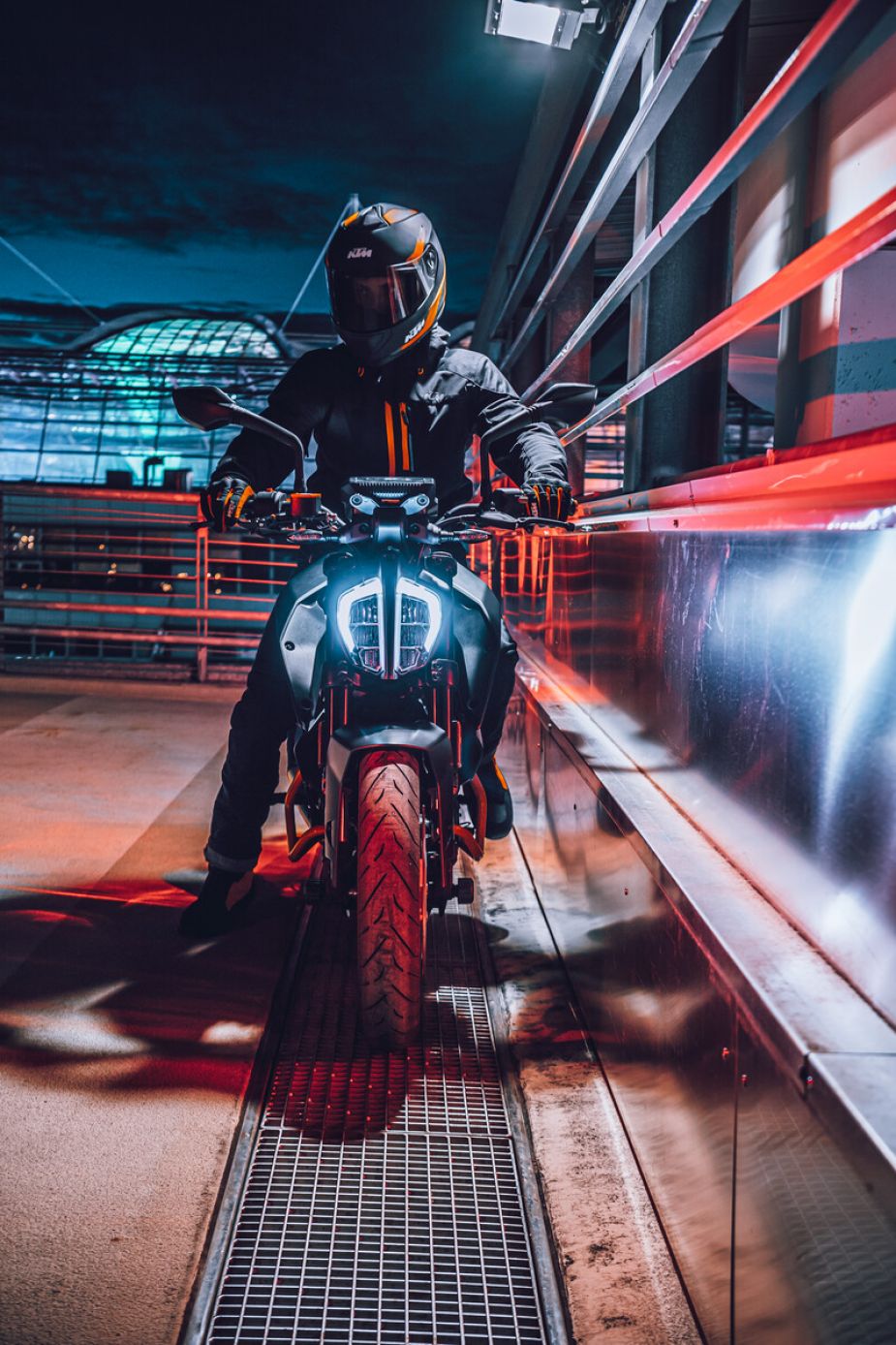 Nie naśladuj stylu jazdy przedstawionego na zdjęciach! Przedstawieni zawodnicy to zawodowi motocykliści. Zdjęcia zostały wykonane na zamkniętych torach wyścigowych lub zamkniętych drogach. KTM pragnie uświadomić wszystkich motocyklistów, że podczas jazdy muszą stosować odzież ochronną i zawsze jeździć w sposób odpowiedzialny, zgodnie z obowiązującymi przepisami ruchu drogowego.
