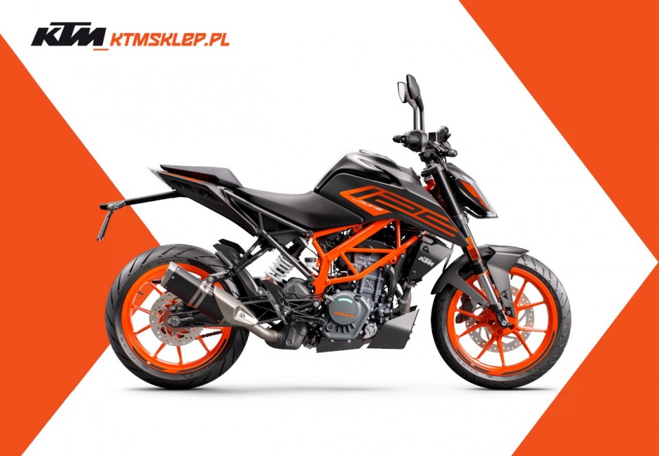 Mały naked z Austrii zawsze przykuwał wzrok i wyglądał nie tyle ostro, co naprawdę groźnie. Mniej zaznajomieni z tematem jednośladów mogą mieć poważny problem z określeniem segmentu do jakiego należy ten mały zawadiaka (no chyba że skupią się na oznaczeniu), bo nowy KTM 125 DUKE dzięki mrocznemu malowaniu i kontrastującym, pomarańczowym wstawkom jeszcze bardziej przypomina swoje większe rodzeństwo, jak KTM 890 DUKE i KTM 1290 SUPER DUKE R. Motocykl ten to najbardziej radykalna propozycja dla młodych motocyklistów A1 lub posiadaczy prawa jazdy kat. B, którzy od 125 oczekują wszystkiego co najlepsze. Doskonały design modelu KTM 125 DUKE idzie tutaj w parze z nowoczesną technologią. Lekki i kompaktowy silnik z wtryskiem paliwa jest teraz zgodny z nową normą Euro5. Generuje on 15 KM (11 kW), co w połączeniu ze zwinnym nadwoziem, zapewnia wyjątkową poręczność i pomimo małej pojemności, spokojnie pozwala dominować w miejskiej dżungli, gdzie nie tylko liczy się moc. KTM 125 DUKE dzięki wydajnemu spalaniu zapewnia około 300 km zasięgu. Na pokładzie znajdziemy także nowoczesne zawieszenie z widelcem upside-down od WP Suspension i tylnym amortyzatorem z regulacją napięcia wstępnego.