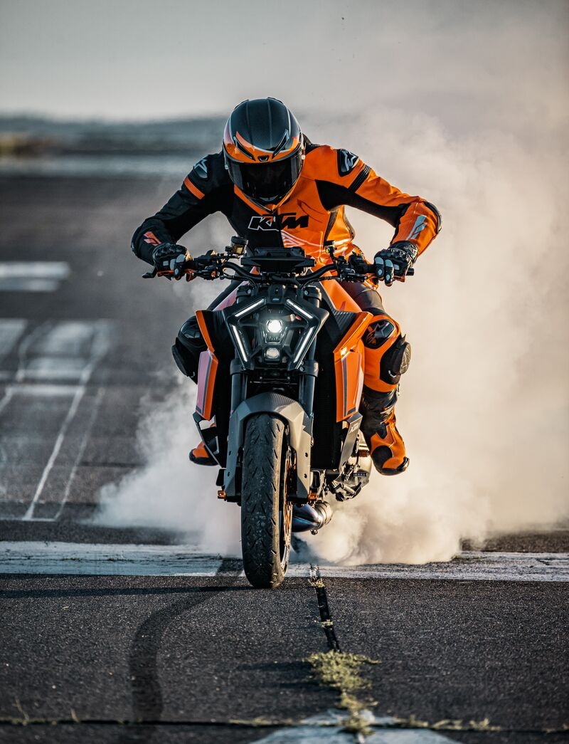 To również jeden z nielicznych motocykli w tej klasie, który oferuje Cornering ABS, tryb Supermoto ABS oraz kolorowy ekran TFT z łącznością. Dzięki temu Duke 125 2025 wyraźnie odstaje technologicznie od większości konkurentów.