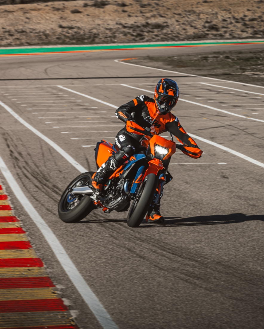KTM 125 SMC R 2026 to najlżejszy i najbardziej angażujący wstęp do świata supermoto. Zwinny, precyzyjny i stworzony do zabawy na asfalcie – od miejskich rond po kręte drogi i kartingowe nitki. To motocykl, który uczy kontroli, pracy ciałem i czystej techniki jazdy, a przy tym pozostaje w pełni użyteczny na co dzień.