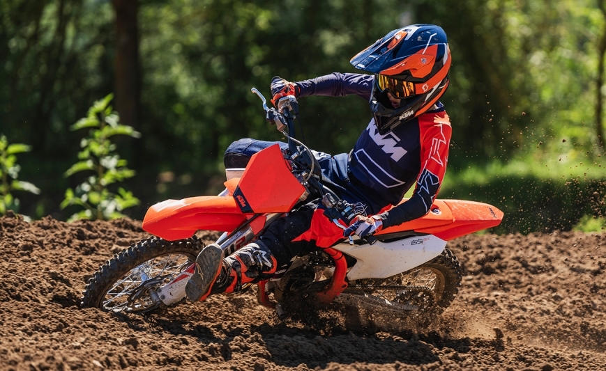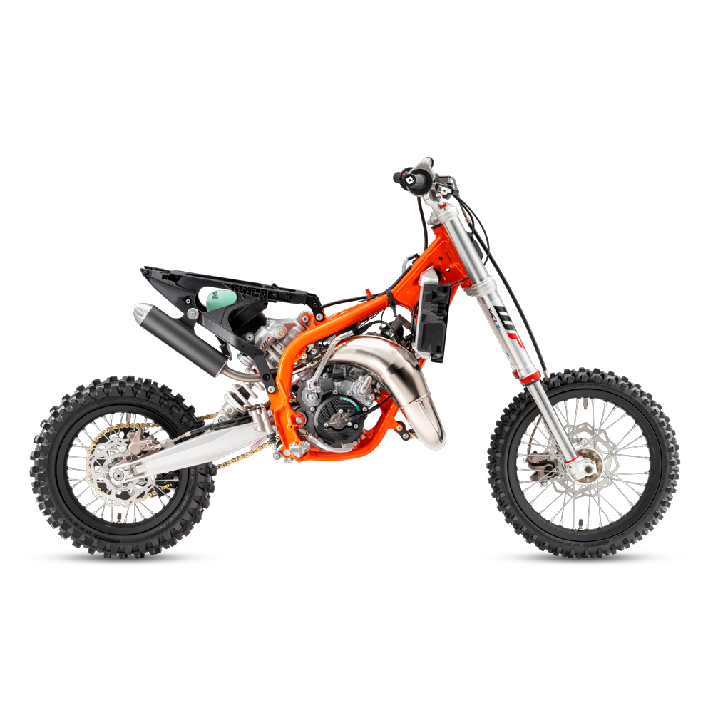Lekka konstrukcja, rasowa geometria ramy i wysokiej klasy zawieszenie WP sprawiają, że młody zawodnik zyskuje pewność prowadzenia oraz czucie motocykla na poziomie znanym z pełnowymiarowych maszyn KTM. Charakterystyka silnika jest dynamiczna, ale przewidywalna – idealna do nauki szybkiej jazdy i budowania techniki.