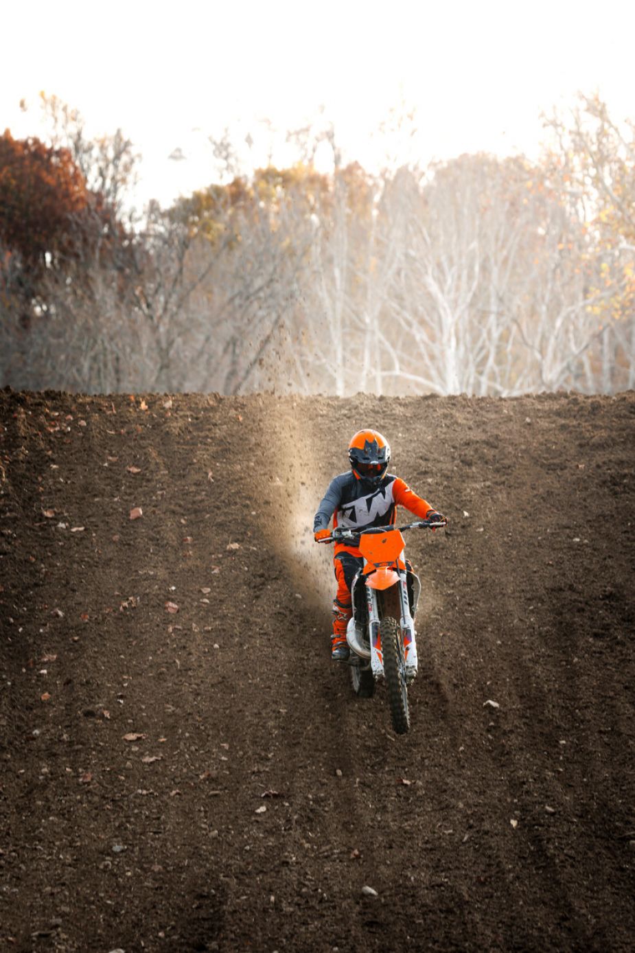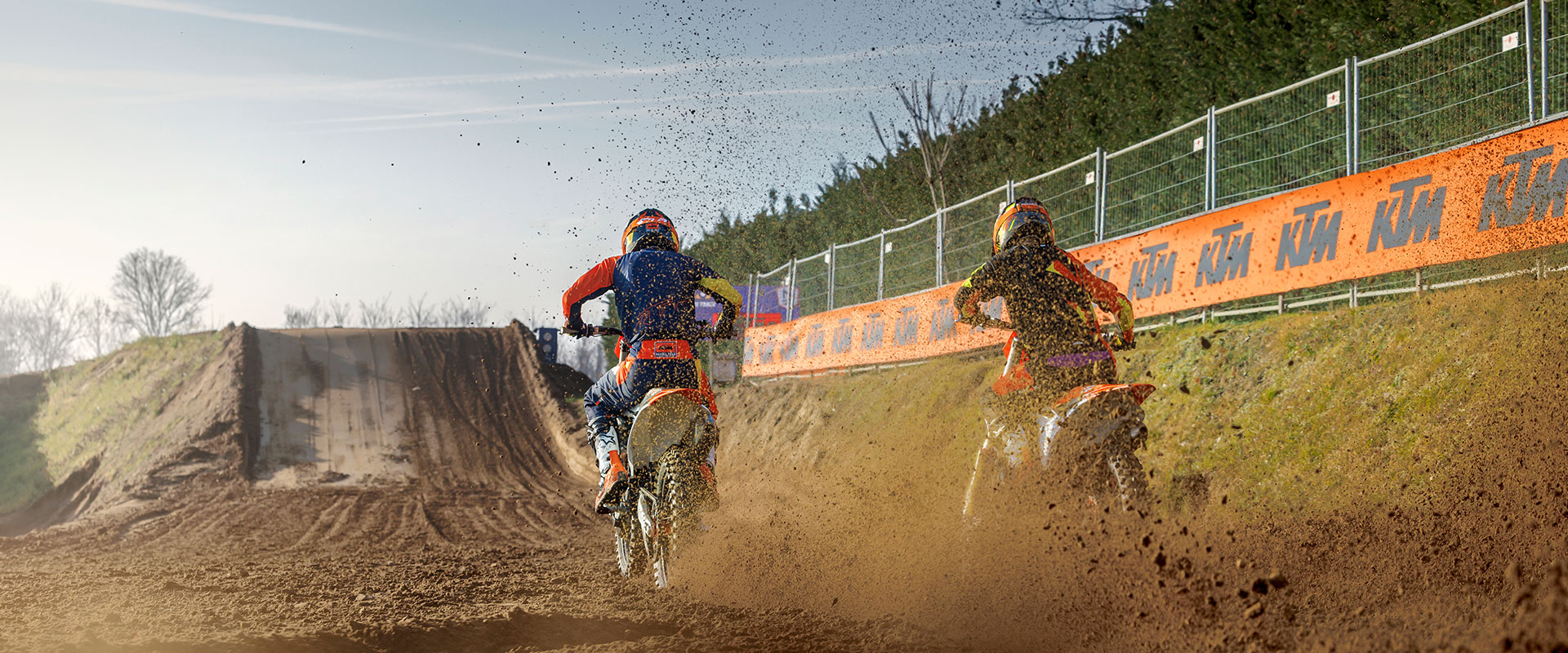 Nie naśladuj stylu jazdy przedstawionego na zdjęciach! Przedstawieni zawodnicy to zawodowi motocykliści. Zdjęcia zostały wykonane na zamkniętych torach wyścigowych lub zamkniętych drogach. KTM pragnie uświadomić wszystkich motocyklistów, że podczas jazdy muszą stosować odzież ochronną i zawsze jeździć w sposób odpowiedzialny, zgodnie z obowiązującymi przepisami ruchu drogowego.