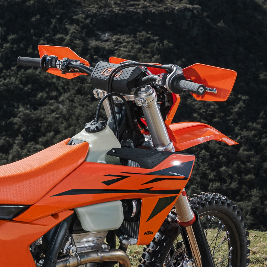 KTM 125 XC-W 2025 może poszczycić się kilkoma cennymi update'ami. I tak tylny amortyzator WP XPLOR PDS zyskał nowe ustawienia, co ma na celu poprawę równowagi ciśnienia i zmniejsza ryzyko kawitacji. Wahacz zyskał na trwałości, a wraz z aktualizacjami w jego obrębie popracowano także nad żywotnością prowadnicy łańcucha. Zbiornik paliwa otrzymał natomiast nowe mocowanie, chroniące ramę przed uszkodzeniami, a nowy przełącznik on/off, który znajdziesz na kierownicy, został zaczerpnięty bezpośrednio z serii KTM SX. Całość dopełnia zupełnie nowe malowanie, skoncentrowane na tym, co najpiękniesze - kolorze pomarańczowym!