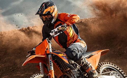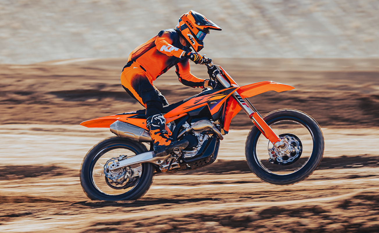 Nowa generacja ramy, rozwijana w oparciu o doświadczenia KTM Factory Racing, zapewnia idealny balans pomiędzy sztywnością a elastycznością. Zawieszenie WP XACT z pełną regulacją bez użycia narzędzi gwarantuje pewność przy lądowaniach, stabilność w koleinach i przewidywalność na dużych prędkościach. KTM 250 SX-F 2026 to kompletna broń wyścigowa – gotowa prosto z salonu.