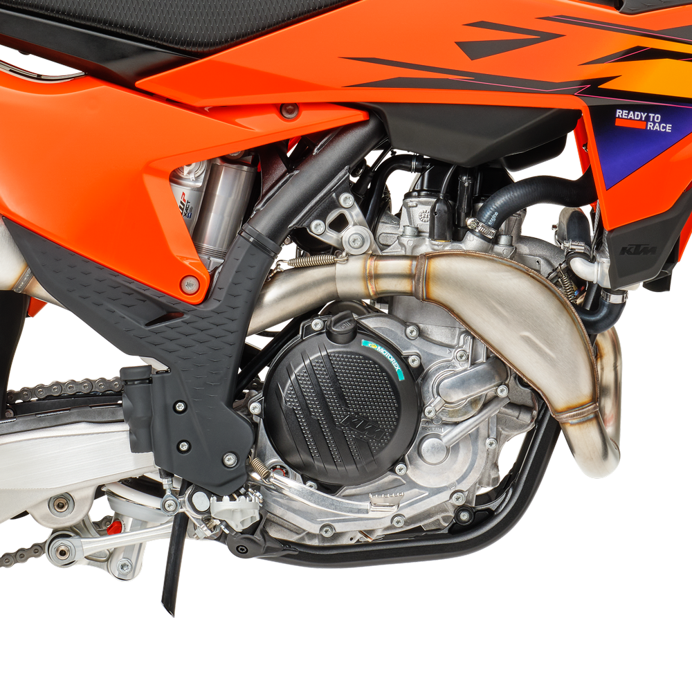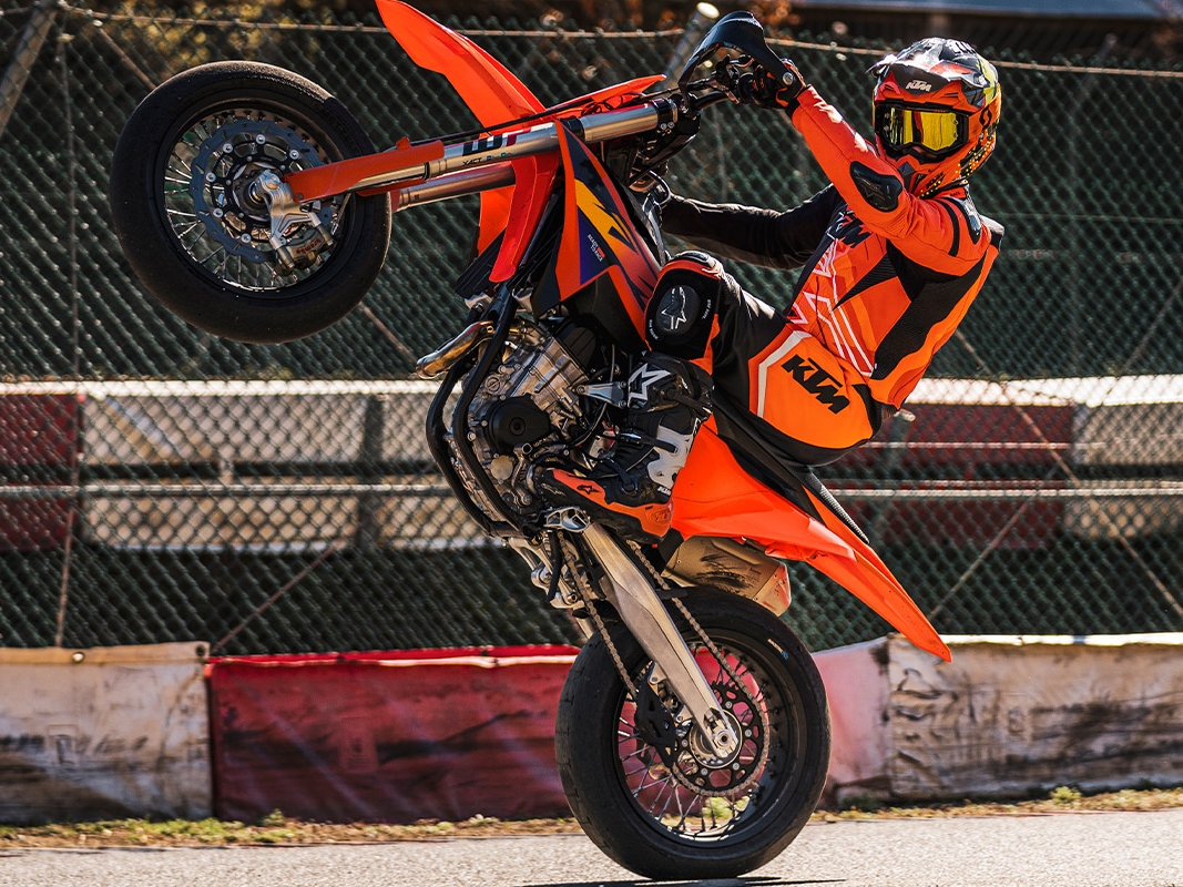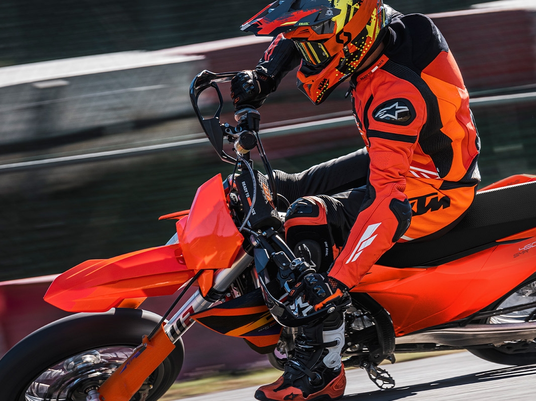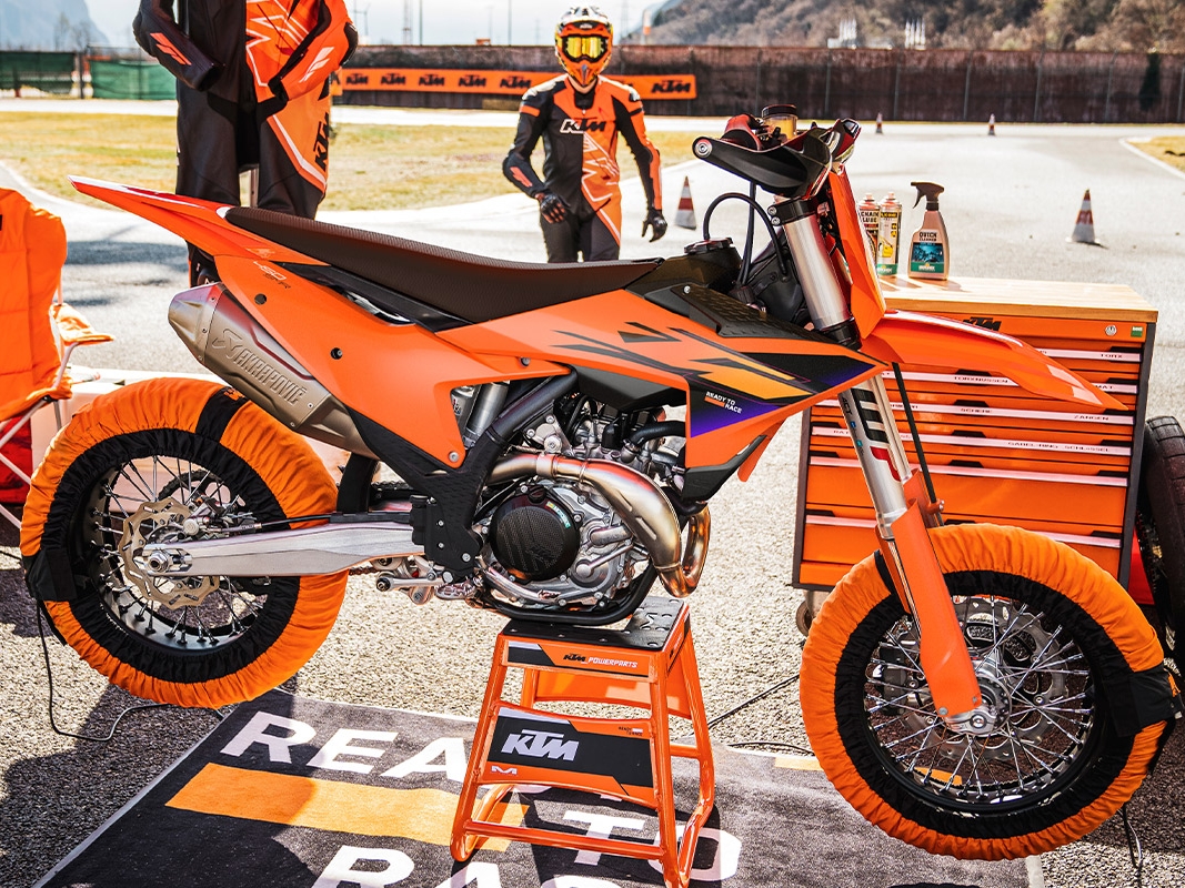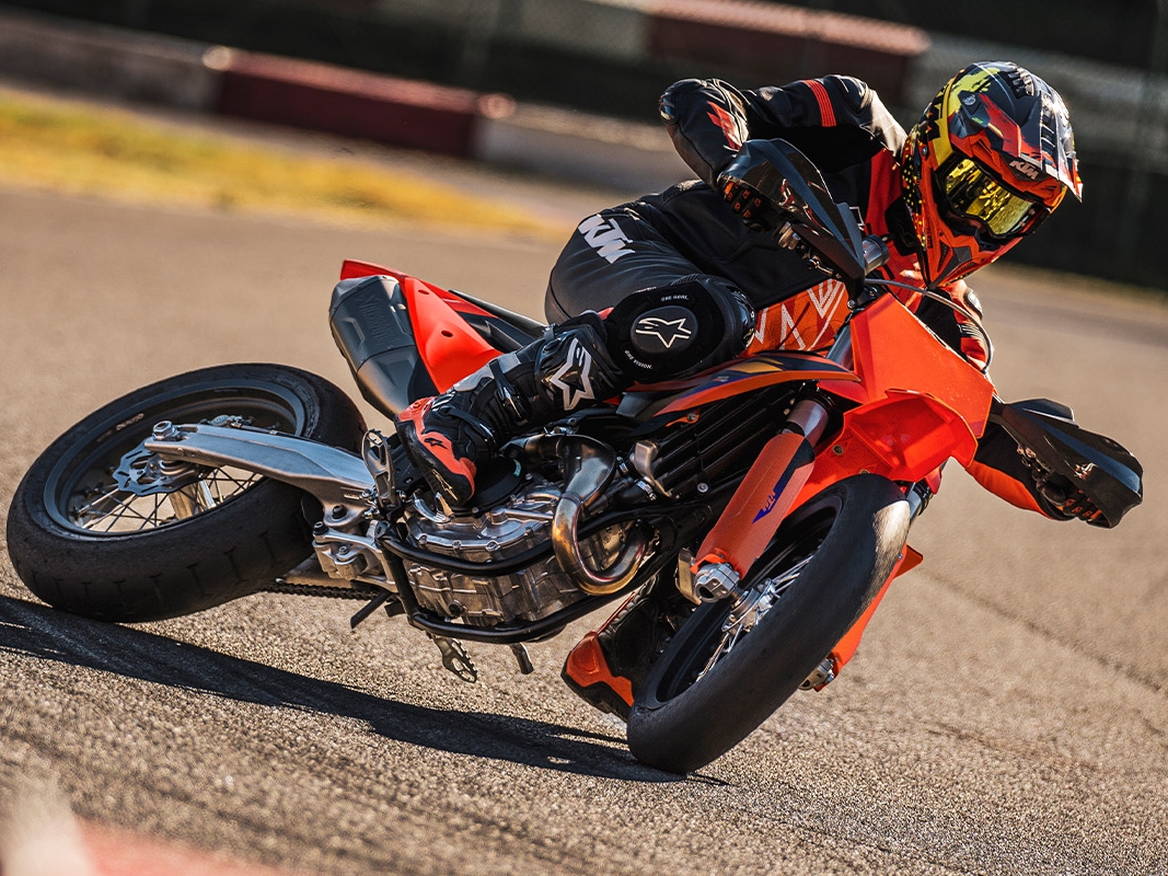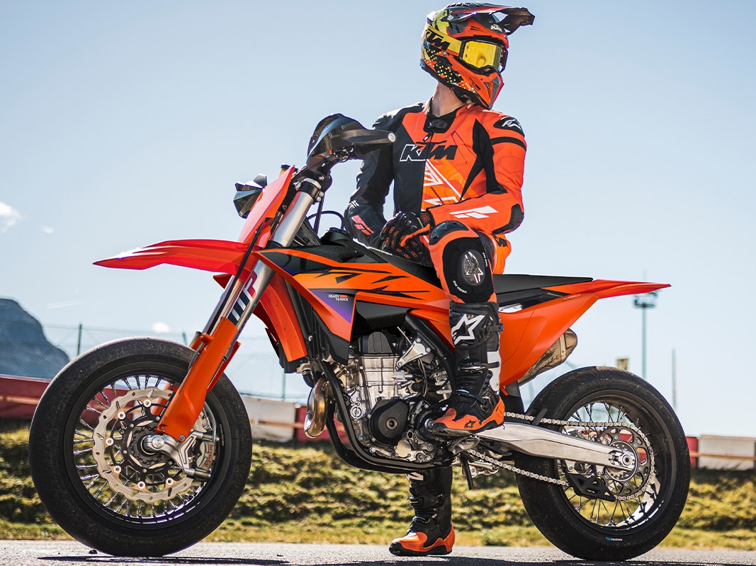 Sercem motocykla jest lekki, wysokoobrotowy silnik SOHC o pojemności 449,9 cm³, znany z modeli SX-F, ale zoptymalizowany pod supermoto. Reakcja na gaz jest natychmiastowa, a charakter jednostki pozwala precyzyjnie kontrolować uślizg tylnego koła przy wejściu w zakręt. Launch Control i Quickshifter są wyposażeniem seryjnym, co daje przewagę już od startu i pozwala skupić się wyłącznie na linii przejazdu.