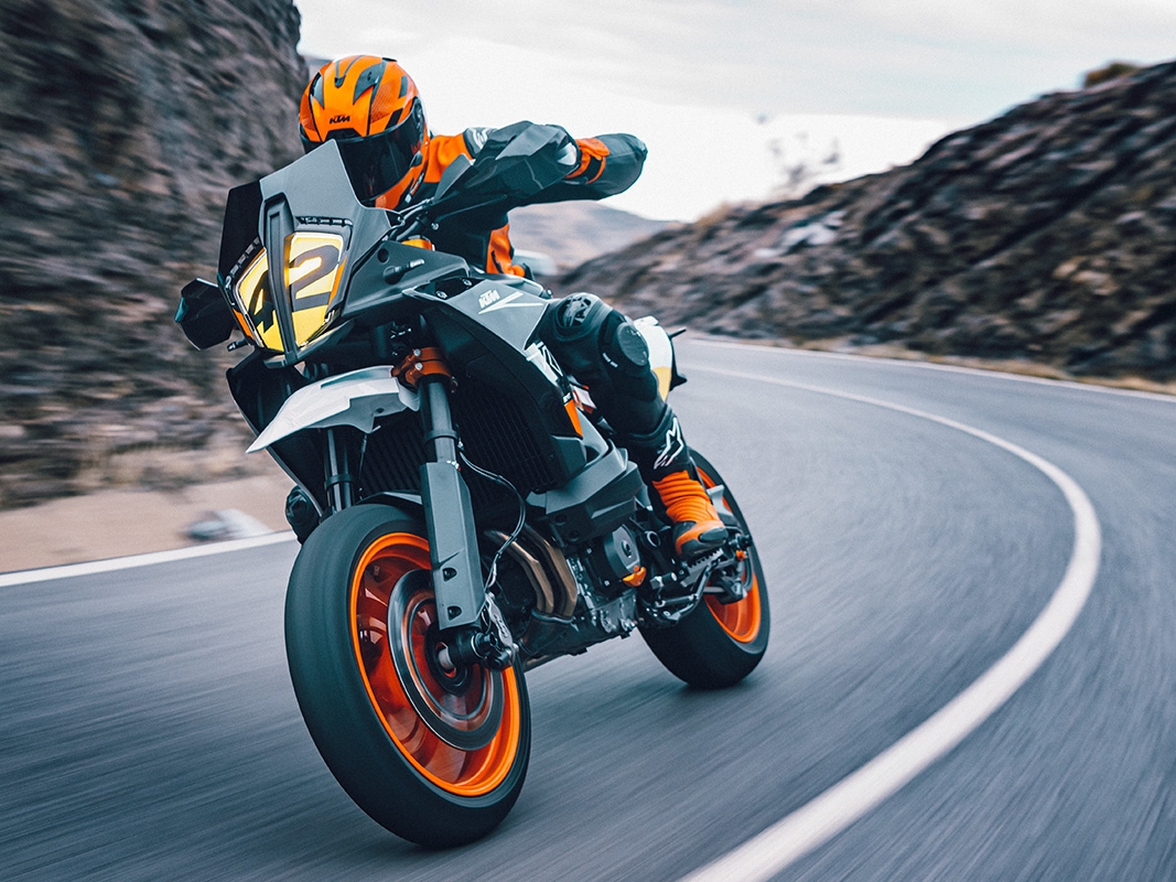 Sercem motocykla jest dwucylindrowy silnik LC8c o pojemności 889 cm³, który zapewnia mocne, natychmiastowe przyspieszenie i świetną elastyczność w średnim zakresie obrotów. KTM 890 SMT został zaprojektowany z myślą o krętych drogach, górskich przełęczach i dynamicznej jeździe asfaltowej – ale bez rezygnacji z komfortu, ochrony przed wiatrem i możliwości jazdy z pasażerem oraz bagażem.
