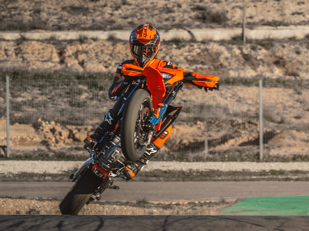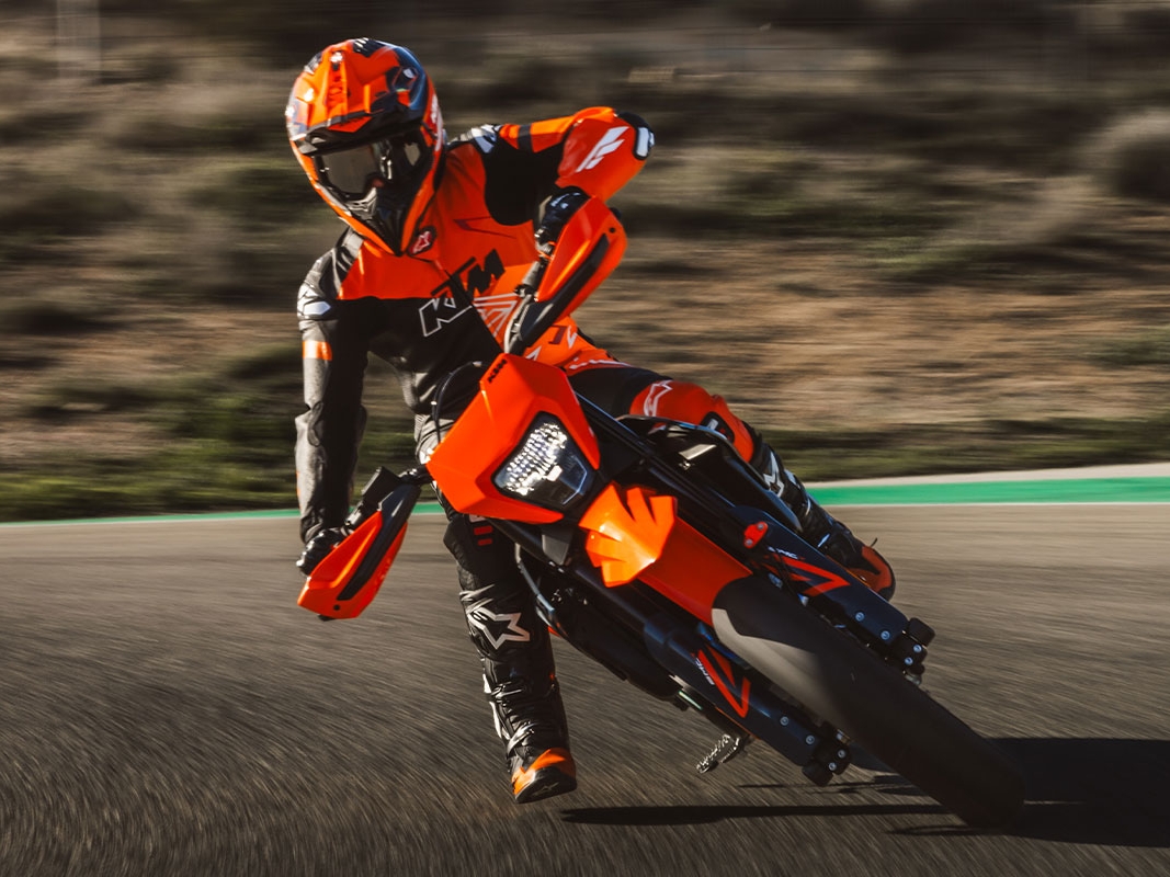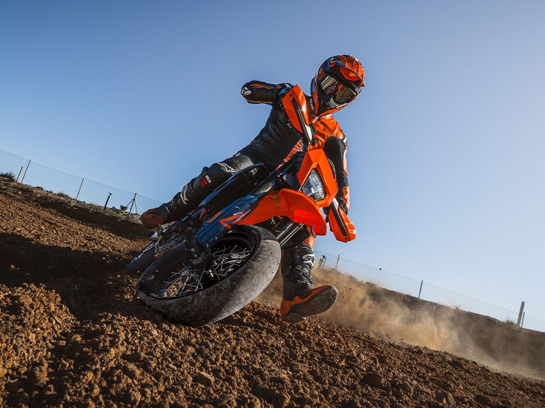 - Drobne zmiany w ergonomii – jeszcze lepsza kontrola motocykla w dynamicznej jeździe supermoto