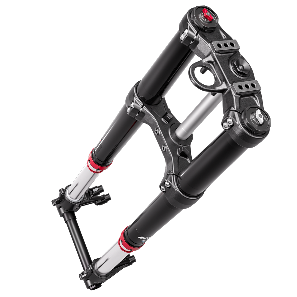 - W pełni regulowane zawieszenie (regulacja odbicia i kompresji przód, odbicie i napięcie wstępne tył)