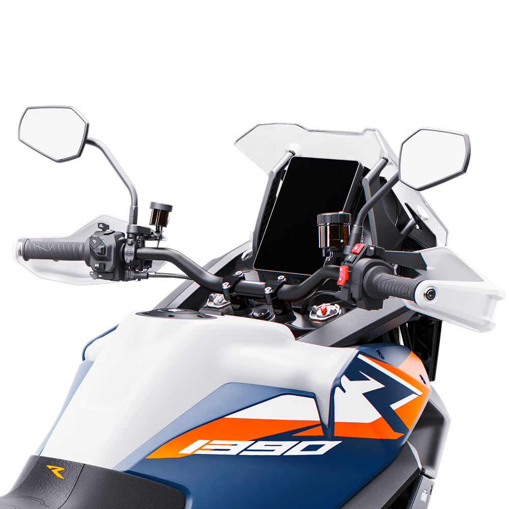 - Nowy, pionowy ekran TFT 8” – poprawiona czytelność w pozycji stojącej, nowy interfejs i rozszerzona obsługa KTMconnect